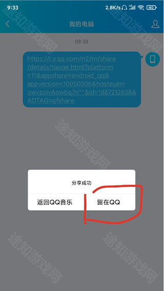 4、分享到电脑成功之后,请选择留在QQ;