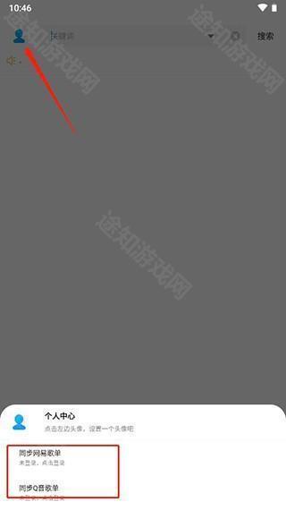 1、点击左上角进入个人中心,在下面就可以看到同步网易歌单和Q音歌单;