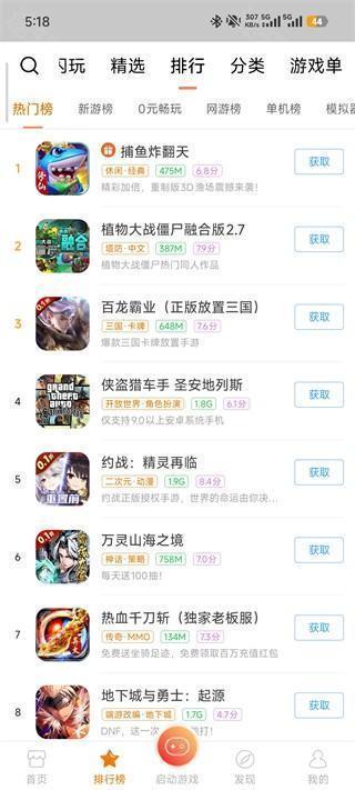 2、点击排行榜这里可以查看【热门榜、新游榜】等最热门的游戏