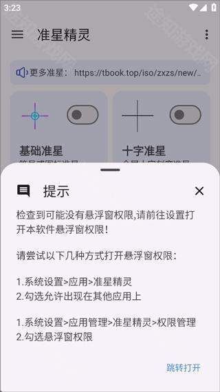 3、进入软件后先给软件开启悬浮窗功能,然后选择自己喜欢的准星。