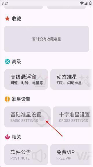 1、首先打开准星精灵,进入后下滑找到“基础准星设置”;