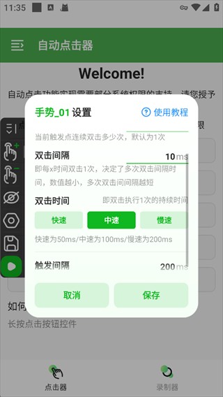 1、通过设置可以设置全局的点击间隔,触摸时长,重复次数,还有快速设置功能。