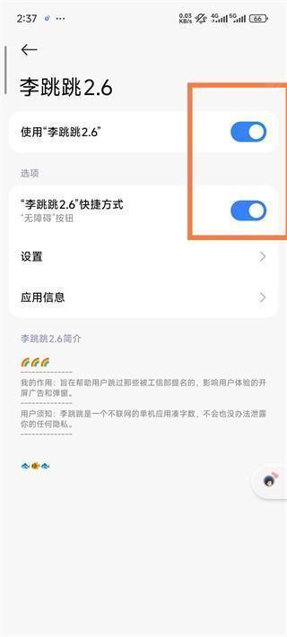 - 无障碍,可以直接打开李跳跳授权界面