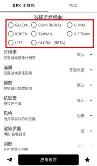 1、打开gfx工具箱,这时候要选择你玩的吃鸡游戏版本了;