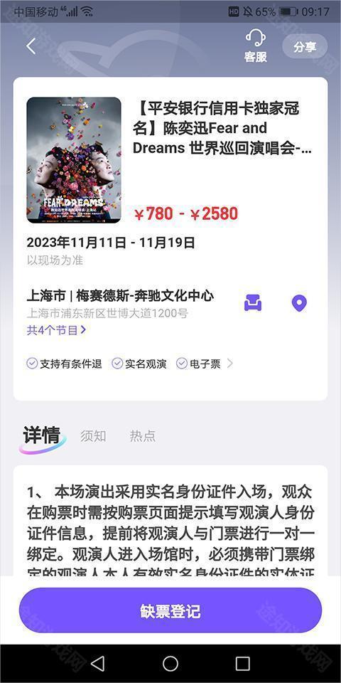 4、上述方式是对于无需实名购票的票源,但是对于需要实名购票的票源用户需要进行缺票登记操作