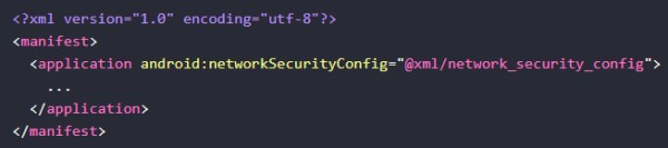 注意:请在发行版本中移除此配置,更多有关网络安全配置文件资料,请参考:Android开发文档。