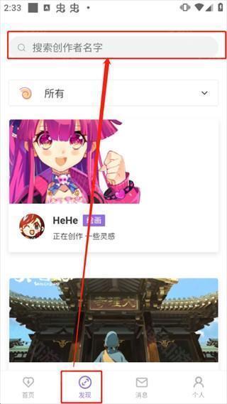 1、进入爱发电App首页点击“发现”,在最上方即可搜索创作者的名字