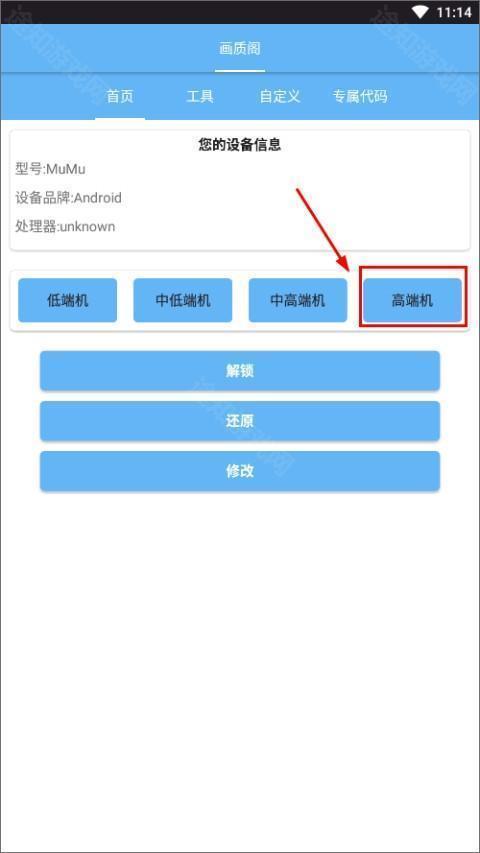 1、打开软件,进入软件如图,用户可根据自身手机配置进行选择,如高端机;
