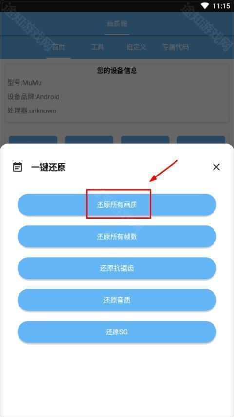 3、可一键还原所有画质、帧数、抗锯齿、音质等设置,回到初始状态。