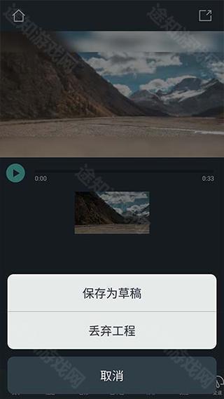 编辑好视频后,你可以点击右上角的导出按钮进行保存。如果不想导出的话,可以点击左上角回到App主界面,此时可以选择“保存为草稿”或“丢弃工程”