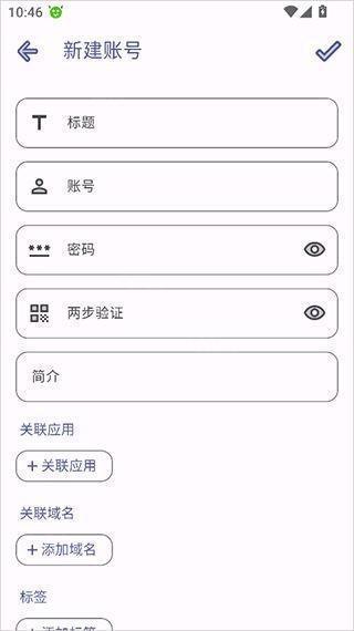 3、接着新建账号和密码时将关联的应用、网站域名等进行设置即可。