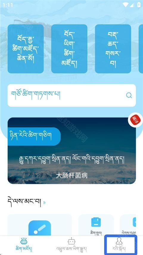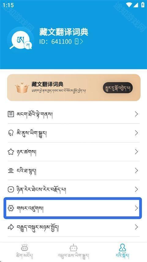 1、打开藏文翻译词典App,点击下方最后一个图标。