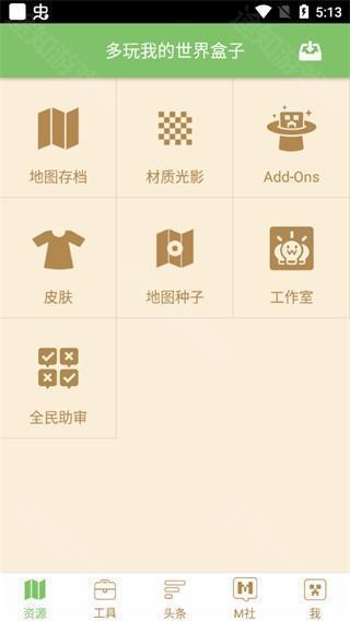 2、在“资源”平台我们可以看多有着“地图存档”、“材质光影”、“皮肤”等各种资源。