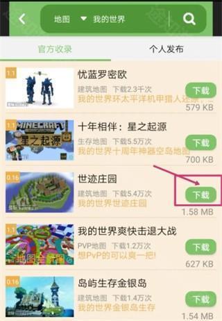 4、如下图,看到相关地图点击下载即可,然后安装我的世界手机版当中。