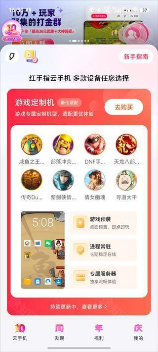1、打开红手指云手机app,玩家可购买或者通过观看广告的方式获取云手机设备;