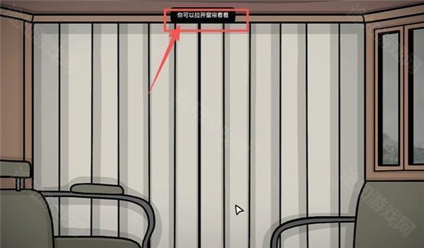 2、我们首先在马车上,根据提示我们可以拉开窗帘看看。