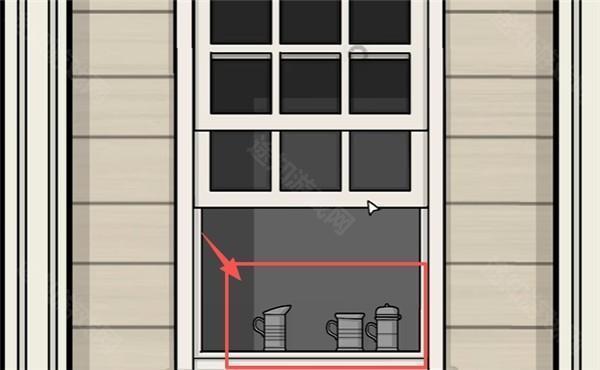 5. 向右移动至右侧窗户处。打开窗户放下两个锡杯,拖动调整至条纹数量从1到5的顺序,取走第一个杯子里的硬币。