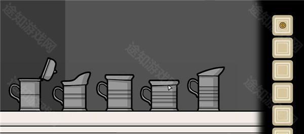 11、将我们之前获得的两个杯子放置在里面,如图,然后我们可以在第一个杯子拿到一个金币。