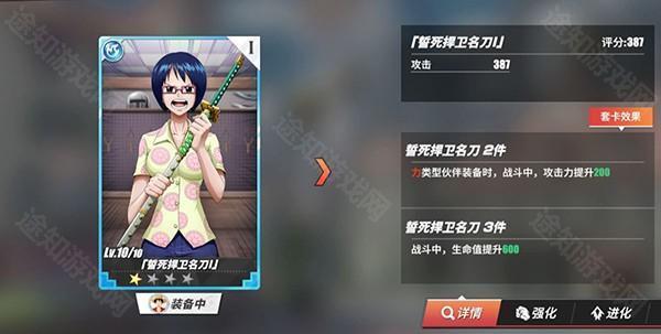 战意卡是左右人物属性值与战力高低的又一因素,选择一套适合的战意卡可以非常有效地提升角色在关卡战斗时的表现。就路飞而言,前期最适合的战意卡卡组莫过于“力系”角色专属的“誓死捍卫名刀”。