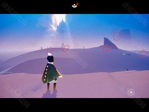 刚进入场景就先爬上眼前的巨大岩石(对你没有听错),我建议先进入洞中,后从岩石后方爬上,有一条岩石的脉络直通山顶,不许飞行,然后会得到一个光之翼(图中已经得到过)。