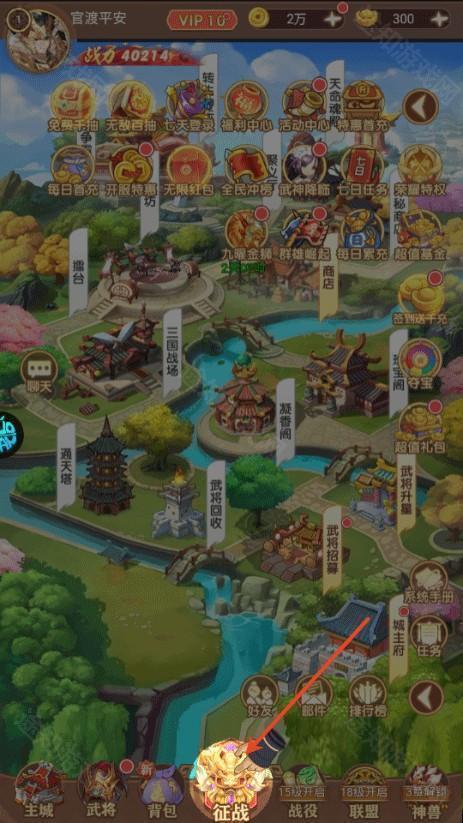 1、下载萌将春秋ol游戏,运行游戏选择区服并进入;