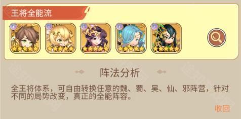 3、王将全能流阵容组成:王·刘备、王·孙权、王·步练师、王·诸葛亮、王·关羽