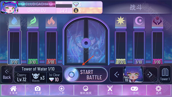 7、点击进入,然后在点击图中箭头所指向的功能开始战斗。