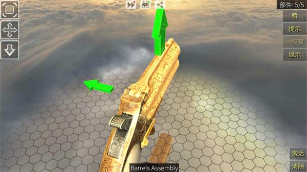 如果您弄不清楚那个零件可以拆卸,试着点击“提示”按钮,拆卸的零件数和总零件数会在右上角显示。完成此型的“完全拆解”式会解锁对应的“组装”式,要了解如何控制视角,点击“视角和型控制”按钮。