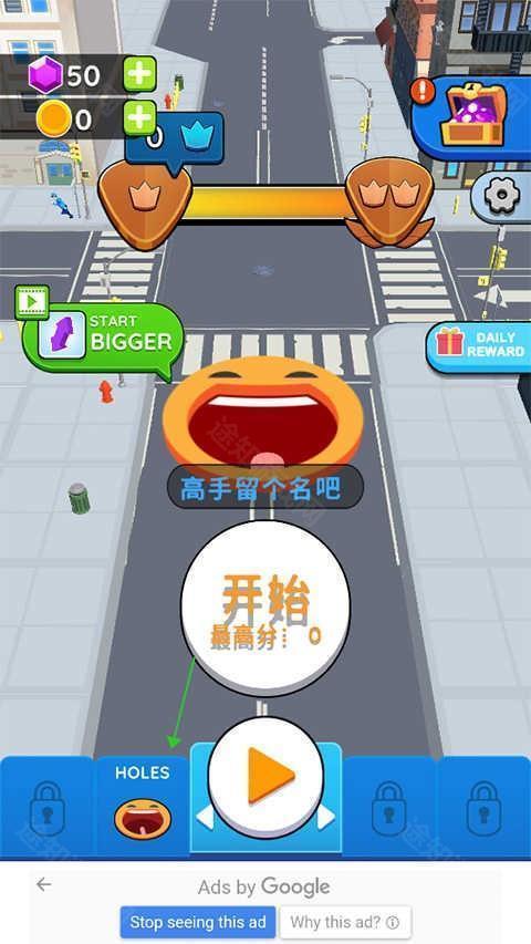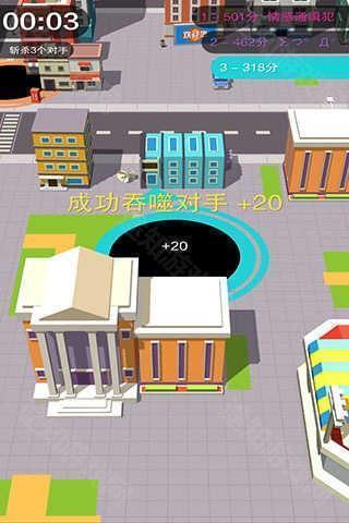 3、开始游戏,记住找到小洞来吞噬,看见大洞就马上掉头跑,直到这里的大洞都被你吃掉。