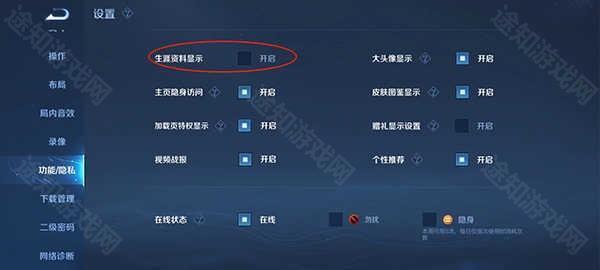 跟上面的方式一样,在隐私功能的上面模板中,只需要将【生涯资料】显示关闭就可以了。