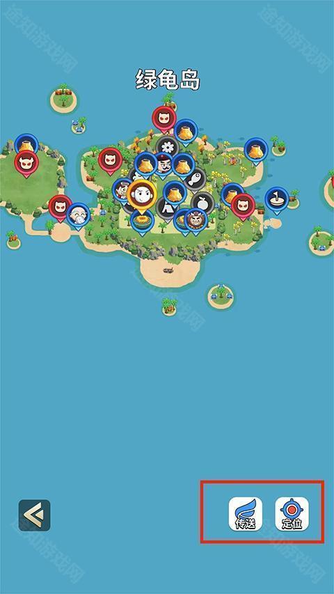 2、进入地图界面,可俯瞰整个绿龟岛,玩家可根据需要选择【传送】或者【定位】,