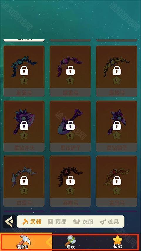 6、在制作栏目,可查看已拥有和为拥有的武器、藏品、衣服和道具,还可以进行升级,