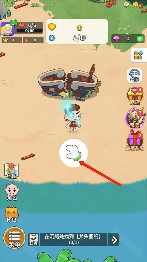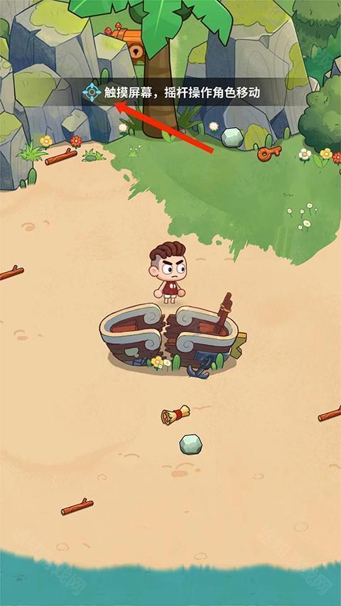 10、进入任务界面,需要在沉船处找到【斧头图纸】,触控屏幕,摇杆操作角色移动,