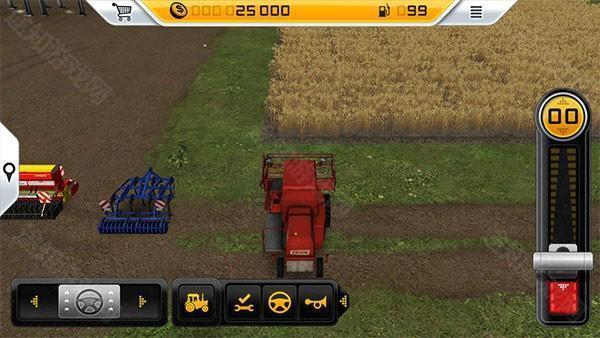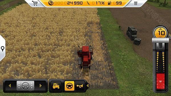4、点击左下角的圆盘可让收割机直线行驶开,请开始你的收割之旅吧。