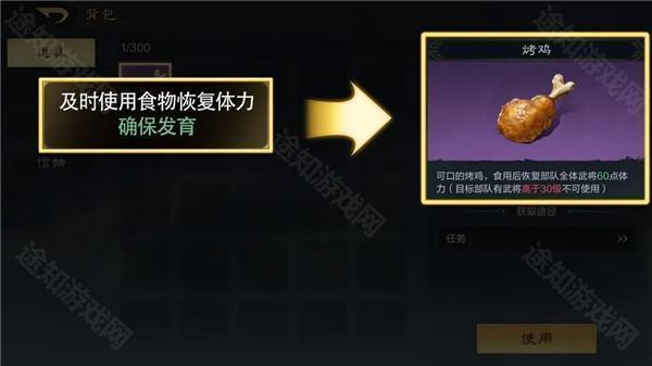 4、前期需要关注武将体力。30级前,可通过食物恢复体力。为确保武将等级后续提升,接近30级时需密切关注体力和经验值,及时使用食物恢复体力,确保发育。