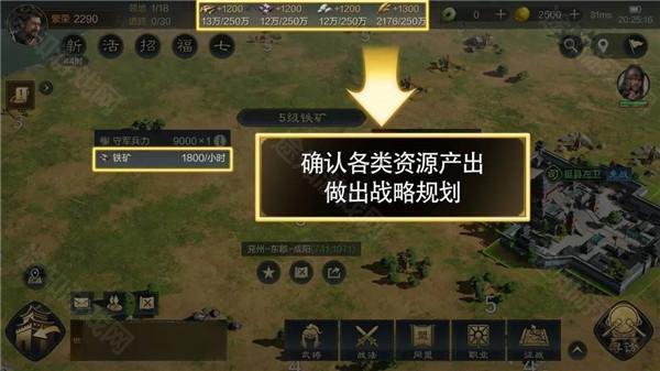 1、攻占土地:击败守军并占领土地后,即可获得对应资源产量。
