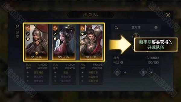7、合理搭配武将以最大化战斗力。选择武将时需考虑属性、技能和特长。前期武将少时,推荐使用前期较易获得的徐盛+大乔+孙策的组合,保证前期战斗无忧。