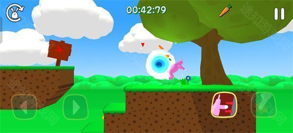 4、进入游戏如图,游戏采用了横版移动操作,玩家需操纵兔子人前进跳跃;