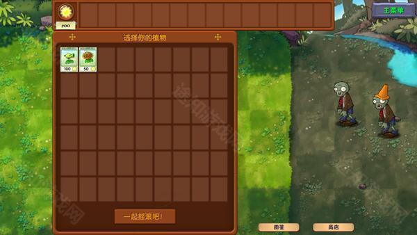 3、接着选择要上场的植物,选好后“点击一起摇滚吧!”开始游戏;