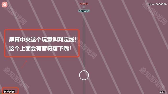 1、这是判定线(的一部分),当音符落入判定线上的判定圆中时,需要根据音符类型进行正确的打击。