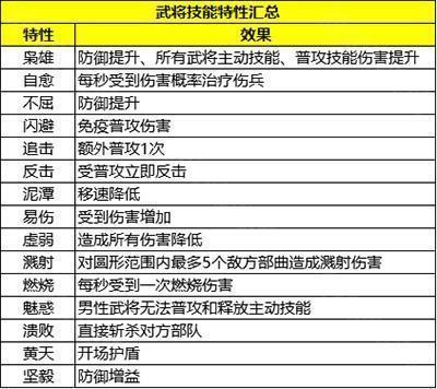 ①技能特性分类武将技能除不同伤害类型外,还存在各类技能特性: