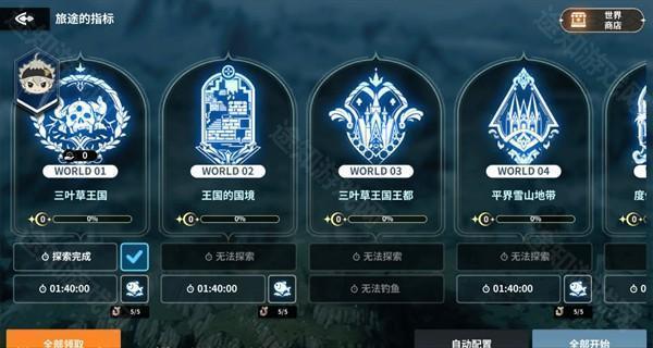 在每个世界探索完最初固定的探索地点后,从下一次重置时间开始,可以通过「旅途的指标」界面,在完成过一次寻找所有固定探索地点的世界中使用「自动探索」功能,这样就能非常有效地节省时间和精力。