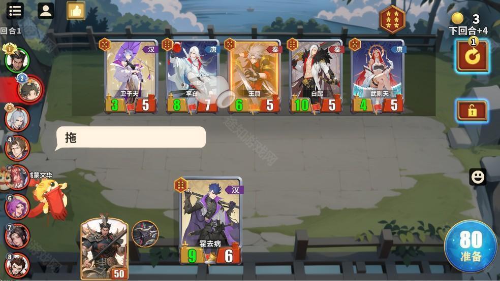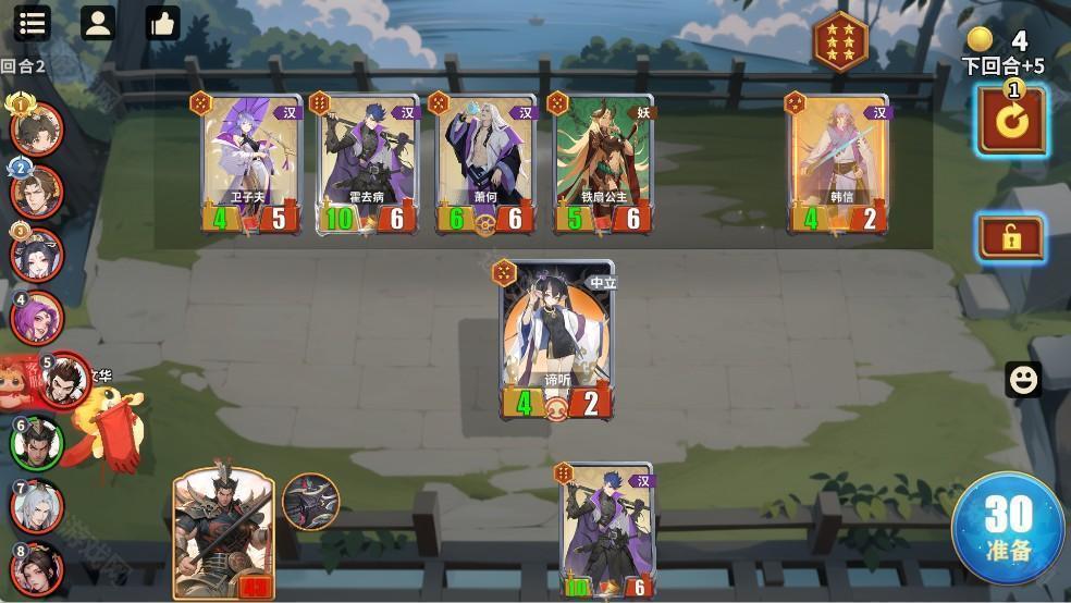 8、每结束一回合都可以进行招募,三个相同的可以进行升星,点击右侧可以进行刷新