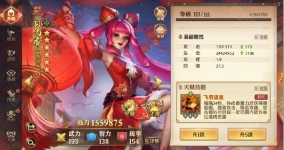 1、各种武将可以通过升级系统提升自身属性,是提升战力的最基本的方式。
