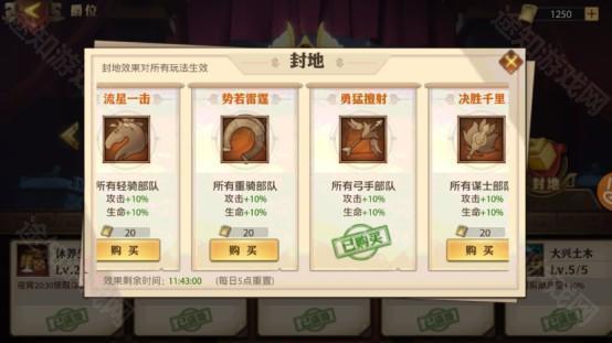 另外,记得把封地里面的弓手BUFF点一下,可以增加一丢丢分数,聊胜于无,哈哈。