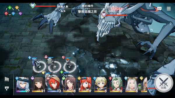 5、进入战斗后,游戏采用了策略放置战棋玩法,玩家需点击敌人前方格子,然后派遣角色攻击;