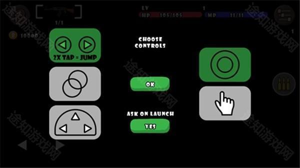 1、进入游戏前,我们需要选择操作模式,游戏为我们提供了三种操作模式,分别是按钮控制移动和摇杆控制移动,同时在攻击上还可以选择点击屏幕攻击或者摇杆控制攻击,小编个人是推荐点击屏幕来攻击。