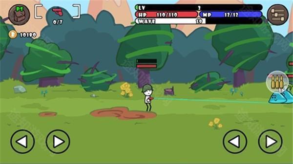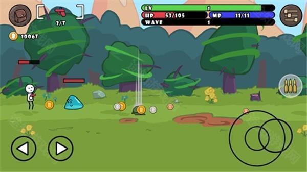 3、游戏中我们要用武器消灭所有敌人,随着时间流逝,敌人会越来越多,所以要通过走位来躲避危险,然后用武器尽快消灭它们。