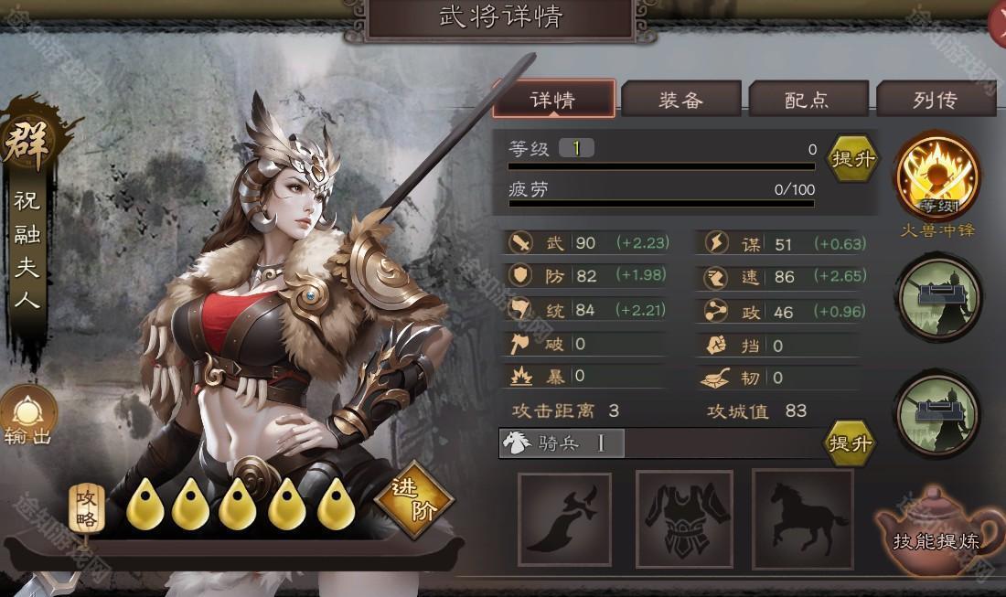 属性优先级:速度>武力>防御(速度至少堆到 190,武力拉满,防御适当补充);