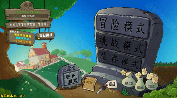 1、在本站下载安装好植物大战僵尸杂交版重制版,运行游戏,可以看到有冒险模式、挑战模式、生存模式等;